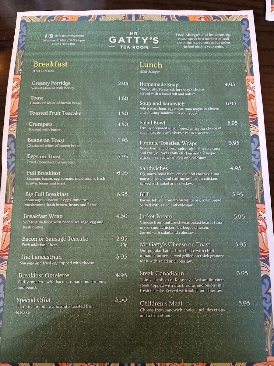 So whether you're looking to start your day off right or enjoy a blissful afternoon tea, head over to Mr Gatty's Tea Room to experience a blend of flavors and warmth that defines this beloved local treasure.
